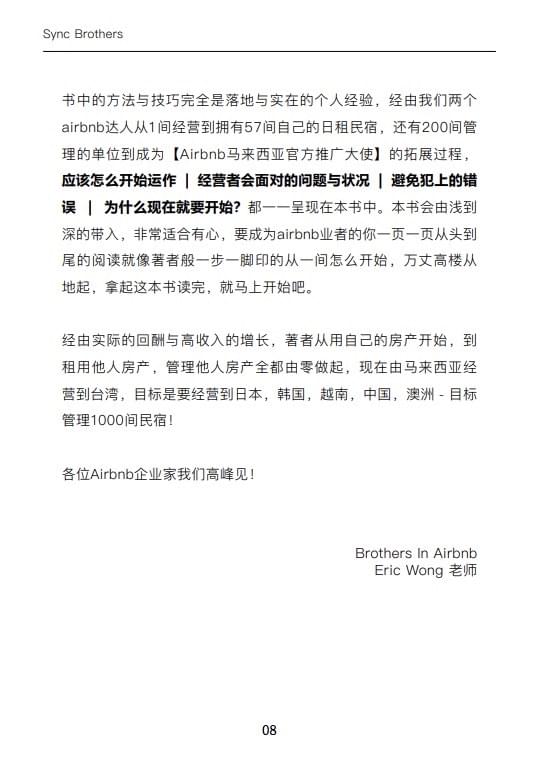 僅此一次機會 (85%OFF) usd47 : : 注意 !!!很多人常问多开一间新的Airbnb第一个步骤是什么?所以老师也发布了全新作品【30日速学Airbnb 秘籍】(101 Ultimate Guide in 30Days) 价值 USD322, 而且是手把手一步一步带领你在30日内办好你的Airbnb单位跟着老师的步骤step by step,简易复制,网上教学影片会来的更加实用 。因为你可以无时无刻重播在任何地点开新单位时拿来观看复习。今天只需附加 usd47 就能得到【30日速学Airbnb 秘籍】 与这本秘籍step by step 网上教学影片, 让你在30日成为像老师般的民宿达人。(这个优惠只限今天以后你在网站看到的即将会是 USD322 )